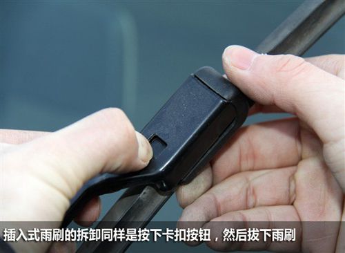 插入式雨刷的拆卸同样是按下卡扣按钮,然后拔下雨刷